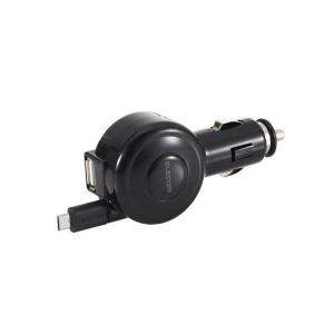 - エレコム シガーチャージャー microBリール65cm+USBポート 2.4A ブラック