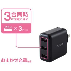 - エレコム MPA-ACU12BK USB 充電器 ACアダプター コンセント(3.6A/Aポート×3)スマートフォン・タブレット用 ブラック
