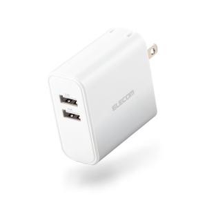- エレコム スマホ充電器 USB充電器 4.8A出力 USB-Aメス2ポート おまかせ充電搭載 ホワイト MPA-ACU05WH