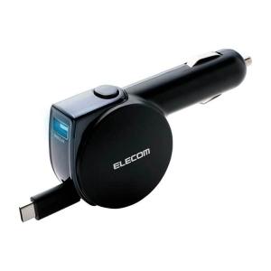 - エレコム シガーチャージャー Type-C リールタイプ USBポート付 おまかせ充電 90cm 5.4A ブラック