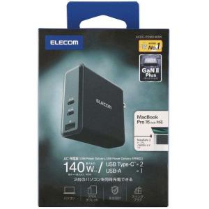 - 即日出荷 代引不可 USB Power Delivery EPR規格 140W対応 AC充電器 (C×2+A×1) ブラック エレコム ACDC-PD96140BK