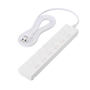 - 電源タップ 延長コード コンセント 3m 2P 6個口 片手で抜けるレバー付 ほこりシャッター 絶縁キャップ 雷ガード スイングプラグ 吊り穴タグ付 ホワイト