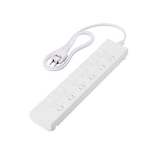 - 電源タップ 延長コード コンセント 1m 2P 6個口 片手で抜けるレバー付 ほこりシャッター 絶縁キャップ 雷ガード マグネット スイングプラグ ホワイト