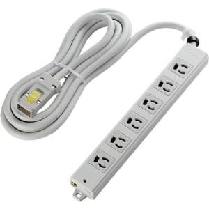 - 電源タップ 延長コード コンセント 1m 2P 6個口 片手で抜けるレバー付 ほこりシャッター 絶縁キャップ 雷ガード スイングプラグ 吊り穴タグ付 ホワイト