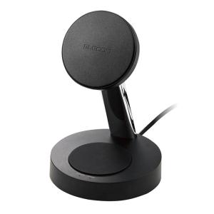 - エレコム ワイヤレス充電器 7.5W+5W マグネット式 スタンドタイプ 同時充電 縦置き 横置き両対応 滑り止めパッド ケーブル一体 1.5m ブラック