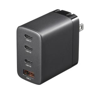 - サンワサプライ USB PD対応AC充電器 PD65W・C×3+A×1 1台で複数デバイスを同時充電可能 ブラック ACA-PD107BK