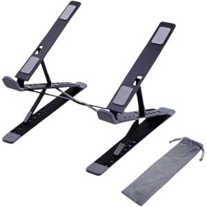 - ノートパソコンスタンド PCスタンド 冷却 卓上 折りたたみ式 滑り止め 持ち運び 高さ調整 アルミ合金製 収納袋付き (ブラック)