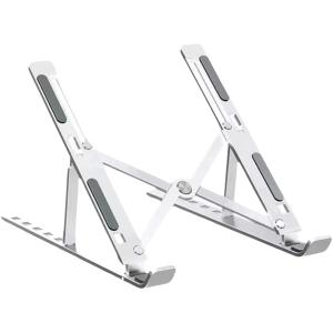 - パソコン スタンド ノート pc 折りたたみ アルミ 持ち運び 6段階高さ調節可能 滑り止め 軽量 放熱 タブレット ブック (シルバー)