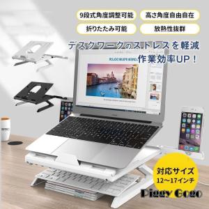 - ノートパソコンスタンド ノートpcスタンド 高さ 9段式角度調整可能 パソコンスタンド 折りたたみ 人間工学 持ち運び ホルダー 滑り止め 姿勢改善