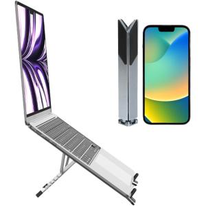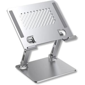 - ノートパソコンスタンド 卓上 軽量 タブレットスタンド 角度調整可能 滑り止め タイピング (シルバー)