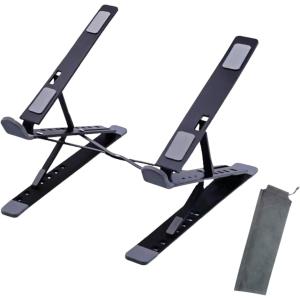 - ノートパソコンスタンド PCスタンド 卓上 アーム 冷却 折りたたみ式 アルミ合金製 高さ調整 収納袋付き (ブラック)