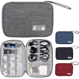 - ケーブル 収納 ポーチ ケース バッテリー PC周辺機器 ガジェット 大容量 薄型(グレー)