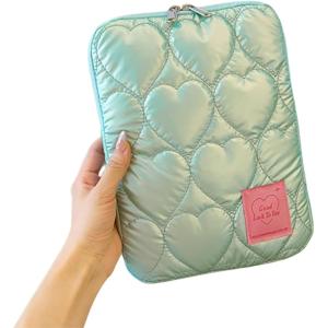 - パソコンケース ハート柄 韓国風デザイン タブレット ノートPC iPad 収納対応 レディース おしゃれ (グリーン)