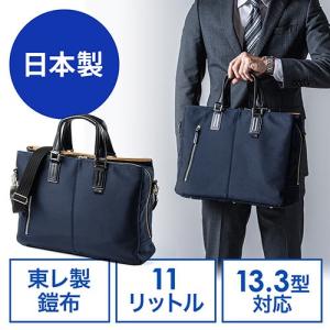 - ビジネスバッグ 日本製 豊岡縫製 ショルダーベルト付 高強度ナイロン鎧布使用 ダブル収納 三方ファスナー ネイビー EZ2-BAG157NV おしゃれ