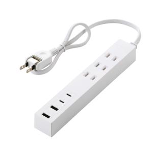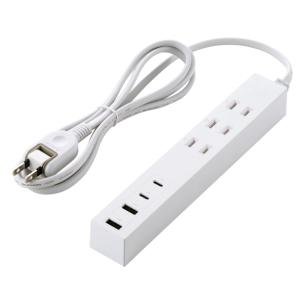 - 電源タップ 延長コード 2m コンセント 3個口 ほこりシャッター 極性対応 絶縁キャップ 雷ガード 個別スイッチ マグネット スイングプラグ ホワイト