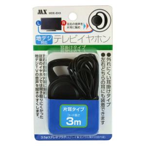- 耳かけ 地デジイヤホン 3m 黒 簡易包装 MDE-EH3