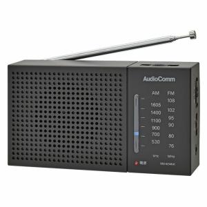 - ラジオ AudioComm 2バンドハンディラジオ ブラック|RAD-H225N-K 03-7056 オーム電機