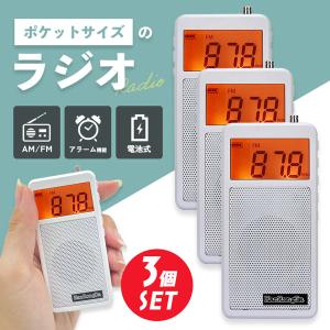 - ラジオ ポケットラジオ 3個セット ワイドFM FM AM 対応 ポータブルラジオ 電池式 目覚まし時計 自動オン 携帯ラジオ ミニラジオ 小型 災害