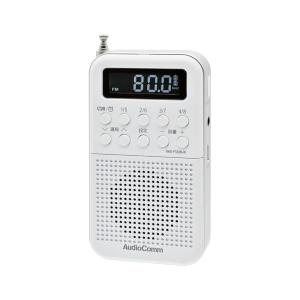 - ラジオ 小型 ポケットラジオ デジタル DSP式 AM/FM ホワイト AudioComm|RAD-P338S-W 03-0987 オーム電機