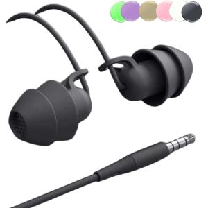 - ?ルナシェ? 寝ホン 睡眠用 イヤホン 有線 耳が痛くない 寝返りしてもいたくない 寝落ち用 ソフトカラー 寝ながら聞く(ブラック)