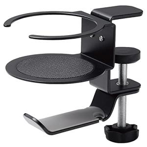- エレコム HP-DSDSKDSV ヘッドホンホルダー 机裏収納 ヘッドホンスタンド ドリンクホルダー付き クランプ式 360度回転