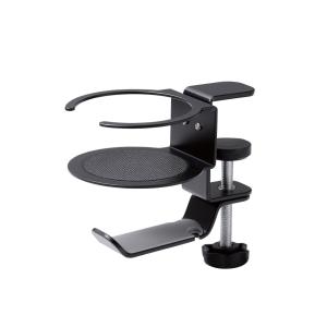 - ヘッドホンスタンド/クランプ式/360度回転/ドリンクホルダー付/ブラック / エレコム株式会社