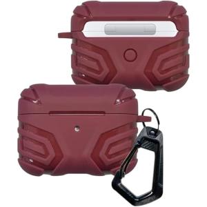 - シズカウィル AirPods 3 ケース カバー カラビナ付 TPU 高耐衝撃 C02 クリムゾン shizukawill