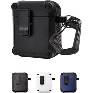 - シズカウィル AirPods 2 / 1 ケース カバー カラビナ付 高耐衝撃 ロック機能 C04 / ブラック shizukawill