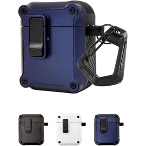 - シズカウィル AirPods 2 / 1 ケース カバー カラビナ付 高耐衝撃 ロック機能 C04 / ディープブルー shizukawill
