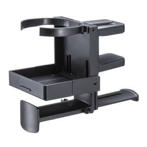 - サンワサプライ ヘッドホンフック ドリンクホルダー付き 360度回転式 2台掛け ヘッドバンド幅68mmまで デスク挟み込み ブラック PDA-