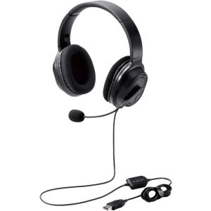 - ヘッドセット マイク付き USB オーバーヘッド 有線 両耳 40mmドライバ エレコム ブラック HS-HP30UBK