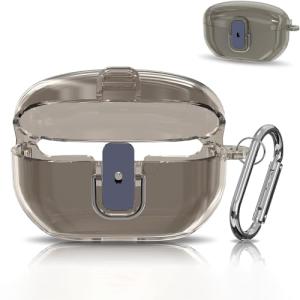 - ソニーWF1000XM5用セキュアロッククリアケース、TPUスーパープロテクティブハードシェルショックプルーフ、キーチェーン付き 透明なグレー