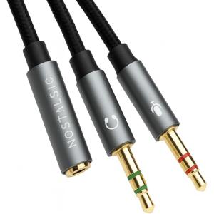 - 3.5mm 4極 3極 変換ケーブル ヘッドセット マイク 分岐 PC/ノートPC/ゲーム機対応 高耐久ナイロン編み(ブラック)