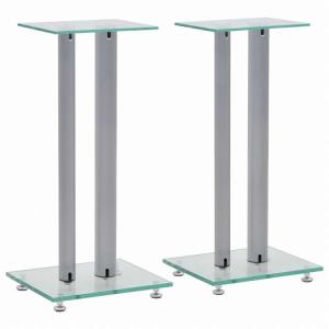 - vidaXL スピーカースタンド 2点 強化ガラス製 柱2本デザイン シルバー電子機器 オーディオ オーディオアクセサリー スピーカーアクセサリ 代引不可