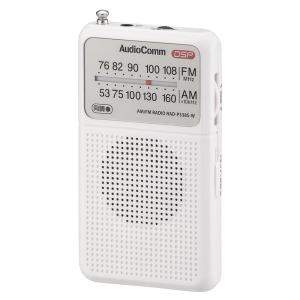 - ラジオ 小型 ポケットラジオ デジタル DSP式 AM/FM ホワイト AudioComm|RAD-P338S-W 03-0987 オーム電機