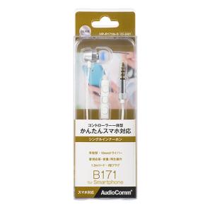 - AudioComm スマホ用ステレオイヤホン リモコン付 ブルー HP-B16Z-A 03-0379 オーム電機
