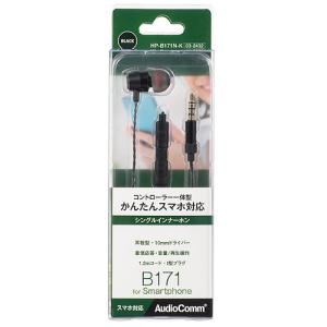 - (メール便可)オーム電機 AudioComm シングルインナーホン ブラック HP-B171N-K 03-2432