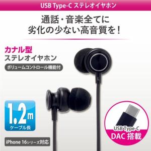 - USB-Cステレオイヤホン ブラック (品番)03-2389 HP-B173N-K (AV小物・カメラ用品:ステレオイヤホン オーム電機) 爆買