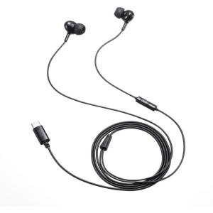 - サンワサプライ USB Type-C イヤホンマイク カナル型 有線 手元スイッチ ケーブル長1.2m 無指向性ブラック MM-HSTC04BK