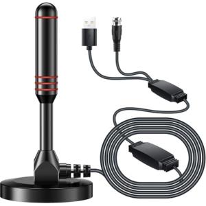 - 室内アンテナ 屋内アンテナ ブースター内蔵 地デジアンテナ 卓上 TVアンテナ F型 地デジ UHF VHF 受信範囲120Km USB式