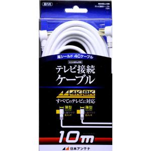 - 日本アンテナ 4K8K対応 テレビ用アンテナケーブル 10m ホワイト L型プラグ-L型プラグ NA4GLL10B