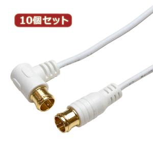 - 10個セット アンテナケーブル 2m ホワイト 両側F型差込式コネクタ L字/ス 取り寄せ商品