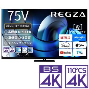 - (標準設置無料 設置Aエリアのみ) REGZA 75V型 Mini LED液晶テレビ[BS・CS 4Kチューナー内蔵 / タイムシフトマシン搭載]75Z875R 返品種別A