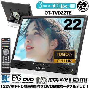 - ポータブルテレビ 22V型 フルハイビジョン 録画機能付き DVD搭載 HDMI搭載 3電源対応 サブモニター OT-TVD22TE