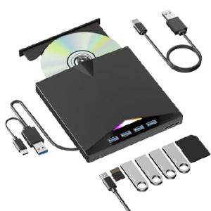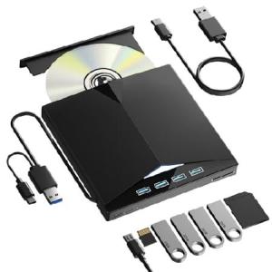 - 【並行輸入品】 高速USB3.0対応 CD DVDドライブ 外付け 読取/書込可 静音 外付けDVDドライブ USB3.0&Type-C両接続 DVDプレーヤー