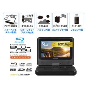 - ポータブルDVDプレーヤー 9型ワイド モバイルバッテリー 乾電池等 対応 4WAY電源 ブラック GH-PDV9R-BK/6192/送料無料