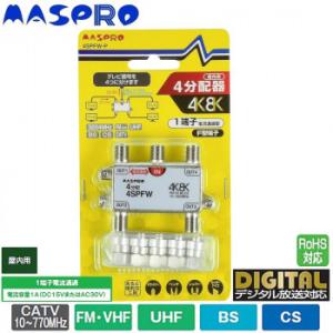 - マスプロ電工 4K8K衛星放送(3224MHz)対応 4分配器 1端子電流通過型 4SPFW