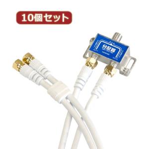 - 10個セット HORIC アンテナ分配器 ケーブル2本付属 1m HAT-2SP340WHX10 家電 映像関連 その他テレビ関連製品