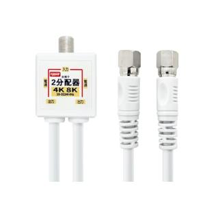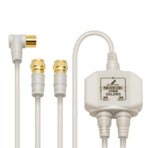 - DXアンテナ 分配器 2K 4K 8K 対応 2分配 全端子間通電 金メッキプラグ 2Cケーブル一体型 2DL2WS(B)