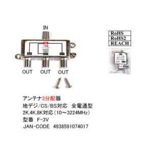 - F-3V アンテナケーブル3分配器 1:3 4K8K対応(10〜3224MHz)地デジ・BS・CS 全電通型